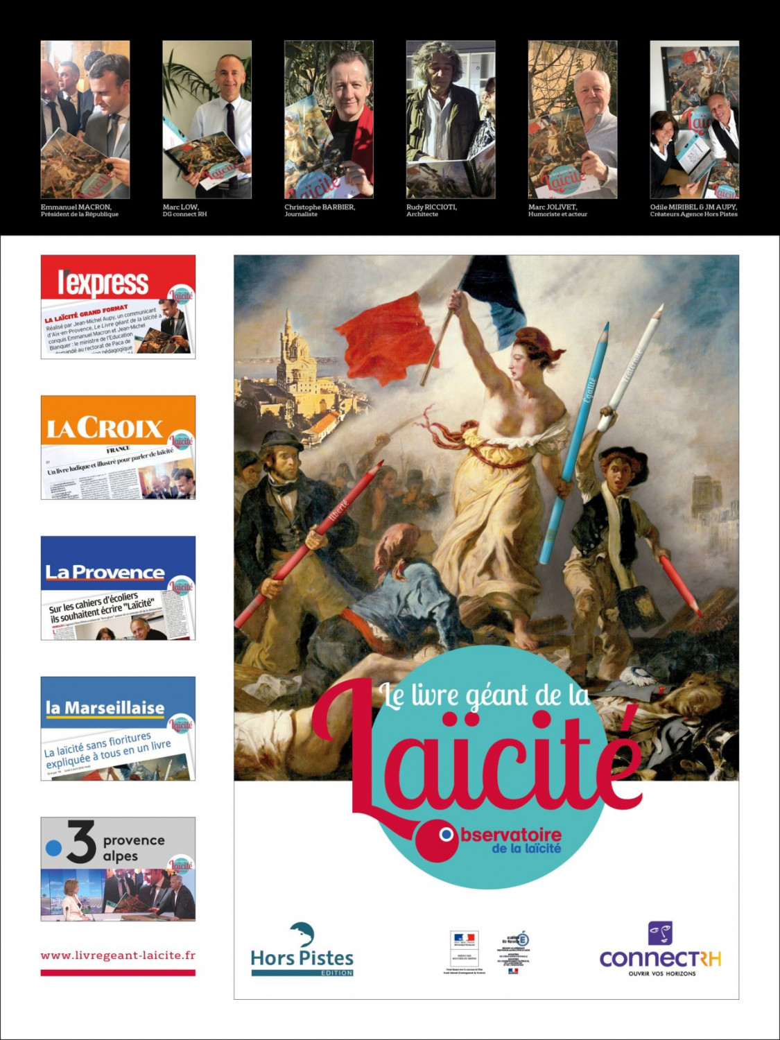 En réponse aux différents attentats qui ont endeuillé la France ces dernières années, Marc Low et son équipe connect RH se sont associés à Jean-Michel Aupy et son équipe de l’Agence Hors Pistes les concepteurs du livre géant de la laïcité . Un concept livre/expo/formation sur la laïcité mêlant histoire, droit et humour : « la laïcité tout le monde en parle, mais personne l’explique au grand…